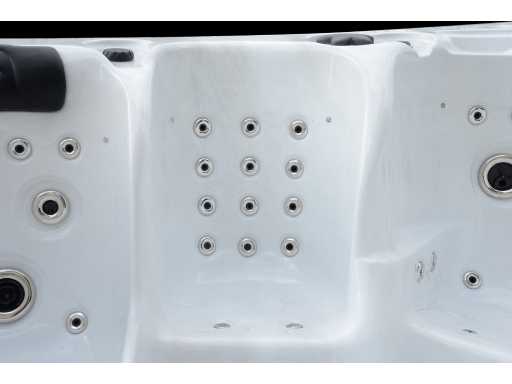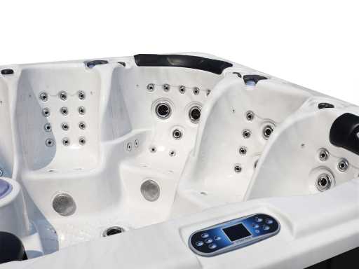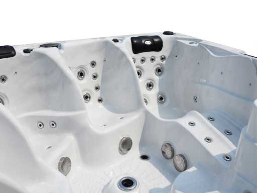 plastic maintenance-free casing, control balboa (Balboa BP6013G2+Spatouch2), Balboa Wifi (to control the spa remotely) Balboa heater (3000 watt), 3 massage pumps (2hp each), 24h circulation pump (0.5hp), air pump (400watt) with air jets, 2 berths and 3 seats (3 places with pillow), cover included (grey), step included (grey), total 88 stainless steel stainless steel jets, extra neck and foot massage jets, frost protection, ozone disinfection system, Ipod bluetooth with speakers, LED fountains, LED mushroom, various LED lighting along the water's edge, various control knobs to regulate the power and distribution to the jets, surface and cleaning filter, tub extra thick foam insulation and extra insulation on the walls, water drainage, this is a new product in packaging, Delivery: the spa is delivered on its side on a pallet and placed at your location with a truck with tailgate (the spa can be easily moved later with a pallet truck or dogs)