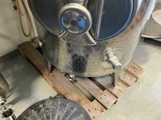 Mounted on 3 welded feet. Tank bottom and side wall in stainless steel 18/8 (AISI 304). Tank roof in stainless steel 18/10 (AISI 316)!! Seamlessly punched manhole from the tank jacket with oval lid 420 x 320 mm (320 l = 320 x 250 mm).
