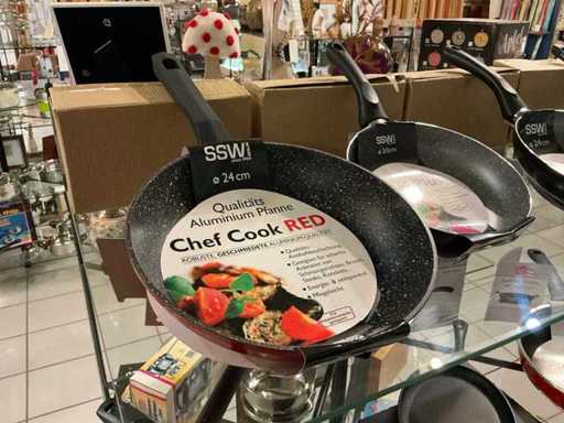 SSW and GWS Pans (6x) + cast iron oval pan with trivet