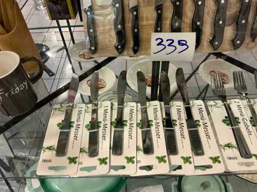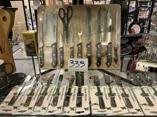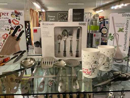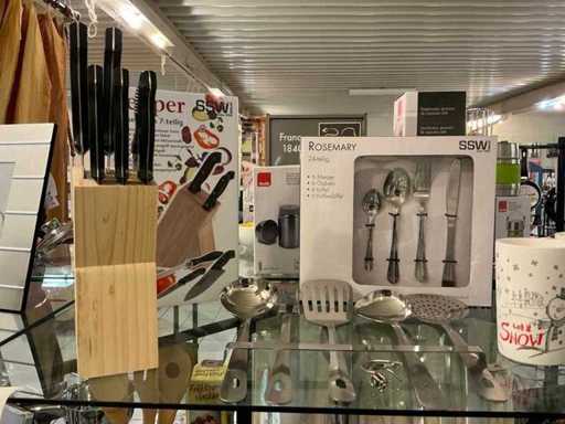 Consisting of 1x 24-piece cutlery for 6 people, 1x 7-piece professional knife block, 1 x 10-piece professional knife block, 4x coffee mug, and so on