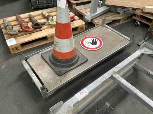 For placing IBC at an angle. Including transport trolley and cone