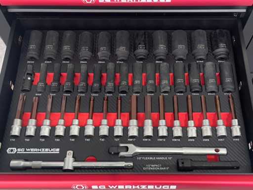 - 25 impact sockets (8-32 mm) + Torx & hex sockets