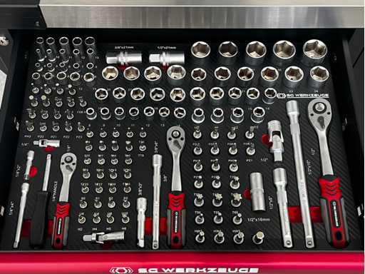 - 3 complete socket sets (1/2", 3/8" & 1/4")