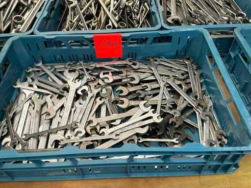 Dimensions 6 to 41 mm / approx 370 spanners, 150 ring spanners and 110 spanners / total 630 pieces / assorted in and including 8 plastic stacking crates ( 600x400mm)