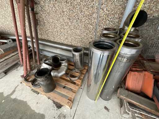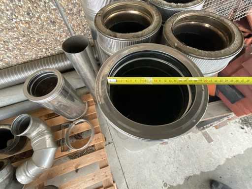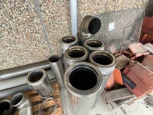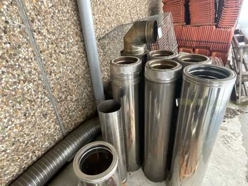 Complete set of insulated double-walled stainless steel chimney flues, suitable for the evacuation of smoke from stoves, wood, pellet or oil boilers.