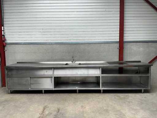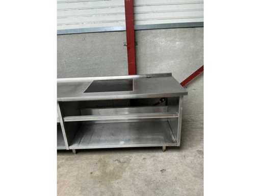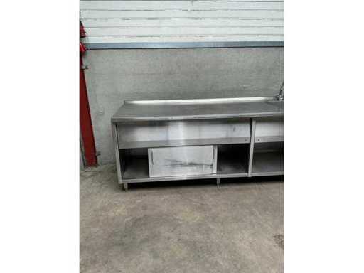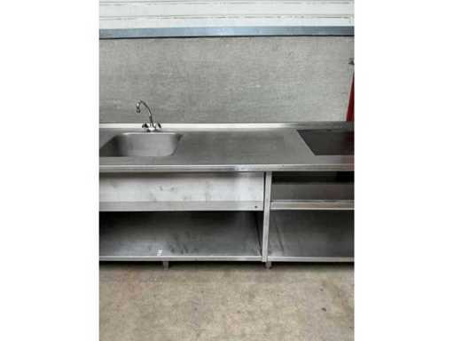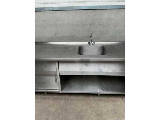 Stainless steel sink, 1 sink 50x50x20 cm, mixer tap, raised edge and 2 sliding doors