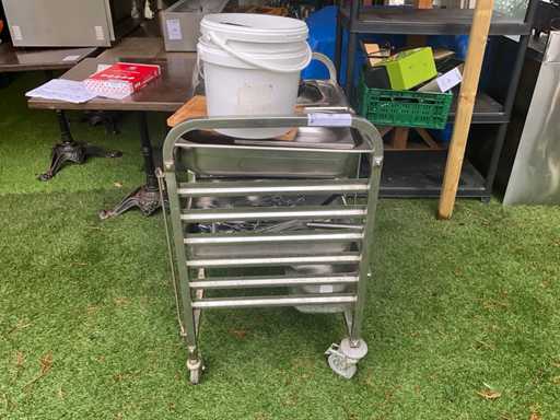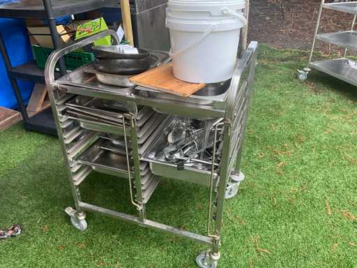 With content consisting of approximately 13 different standard bins, stainless steel kitchen utensils, PVC buckets, etc..