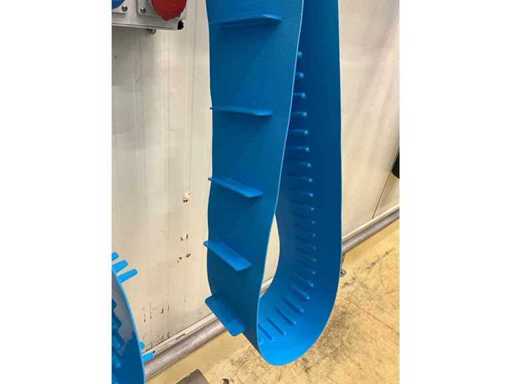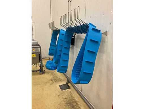 Each equipped with 8 hook elements, complete with 2 plastic conveyor roller conveyors, each approximately 6 meters long