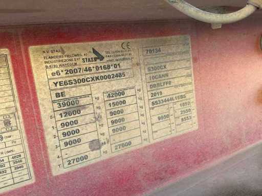 Registration certificate available, certificate of conformity available, tare 8280kg, maximum permitted mass 39000kg