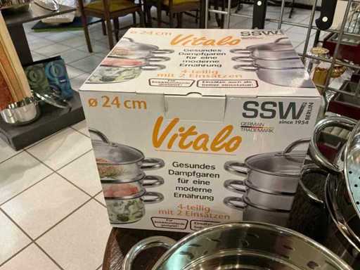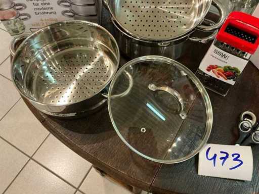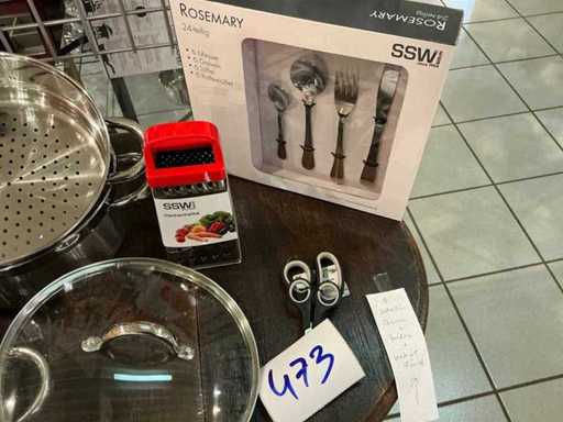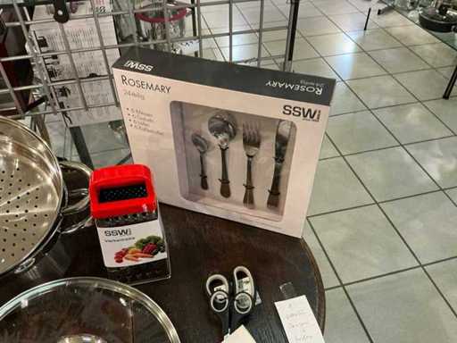 4-piece steam set 24cm, grater, scissors set and 24-piece cutlery for 6 people