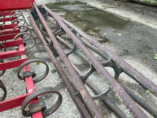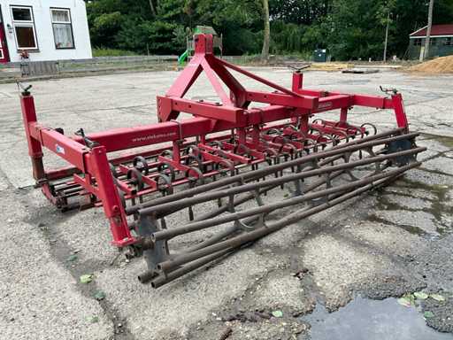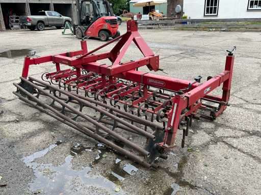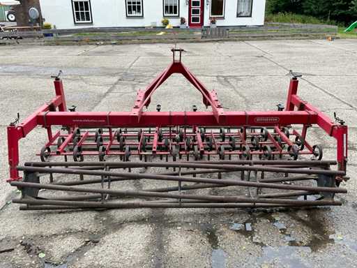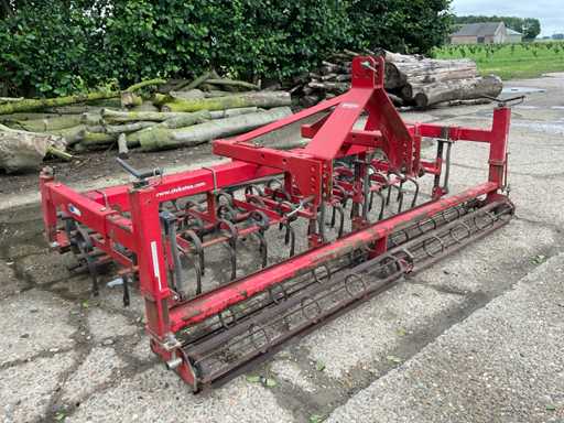 Equipped with: adjustable front rollers, single leveling plate, 3 rows of spring tines, trailing roller, 3-point connection