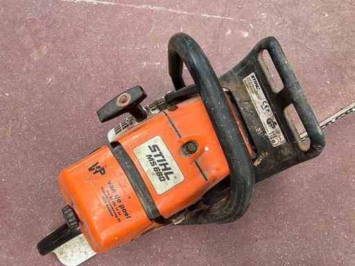 Very powerful professional chainsaw from STIHL, type MS 660. This model is built for heavy-duty work such as forestry, large trees and intensive cutting - Features Very powerful pro-grade saw Suitable for heavy and long-term use Anti-vibration system Chain brake available Professional long blade configuration Sturdy double handle Known for reliability and strength 📦 Condition: Functional Used condition (visible signs of wear and dirt) Chain and blade available Start and operation okay