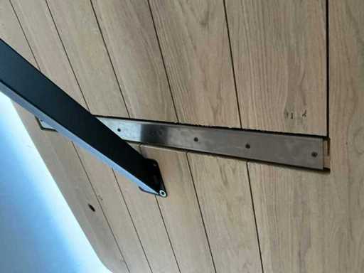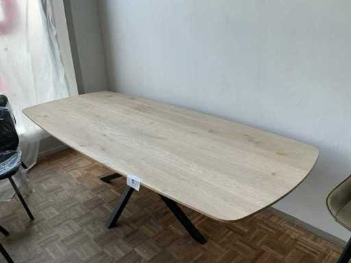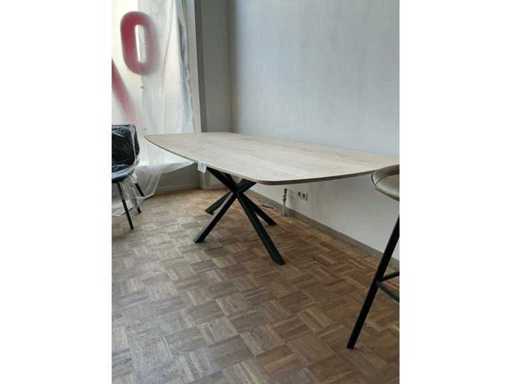 Equipped with wooden top and metal base with dimensions approximately 260 x 110 x 76 cm