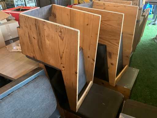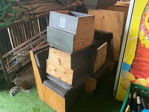 Consisting of approximately 17 modules with fabric seat and backrest, wooden construction with sheet material, total 14 running meters