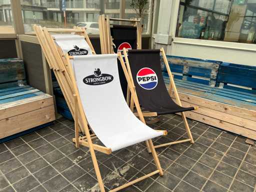 Wooden beach chair foldable Strongbow+Pepsi upholstery