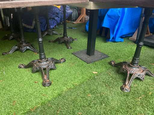 Most Equipped with central wrought iron base, wooden top