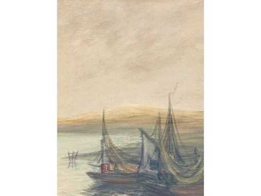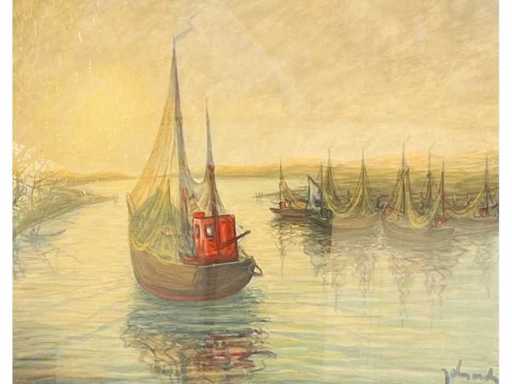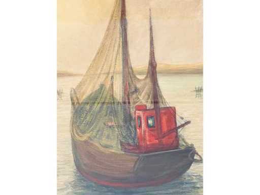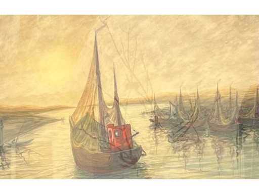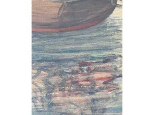 Large watercolor on paper (91x70 cm) - drawn - beautiful colors - framed behind glass in wooden frame (104x82 cm) - low starting price - work in excellent condition (stripes on the photos = reflection)