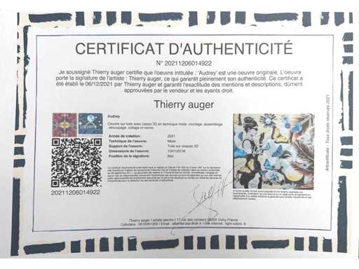 With certificate of authenticity - gallery price: 1,250 € - French artist Thierry Auger is inspired by pop art. In his work, he combines iconic images and bright colors with expressive compositions that balance between figuration and abstraction. His paintings are included in various French and international collections.