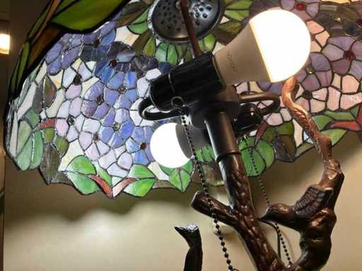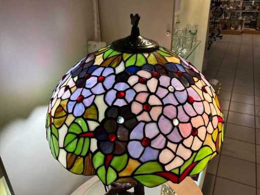 Art Deco Tiffany lamp with multicoloured shade with floral décor and pearls