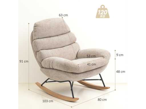 Technical specifications: ? Colour: Brown ? Materials: Chenille (100% polyester), foam, artificial cotton, steel, rubberwood ? Overall dimensions: 80 cm (width) x 103 cm (height) x 91 cm (height) ? Seat dimensions: 41 cm (width) x 53 cm (thickness) x 48 cm (height) ? Seat height: 13 cm ? Backrest dimensions: 63 cm (L) x 68 cm (W) ? Back thickness: 26 cm ? Armrest dimensions: 61 cm (L) x 20 cm (W) x 9 cm (H) (up to the seat) ? Load capacity: 120 kg