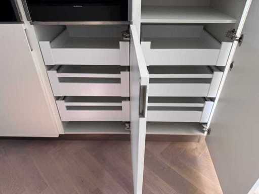 Condition: used; dimensions cabinet wall approximately 240x60x220 cm; already disassembled and packed on pallets. (stacking, exchange or deposit per pallet); pallets are not included; pay a deposit when picking up, or stack pallets; worktop not packed on pallets (26-2DE-03130); without fridge, freezer and dishwasher