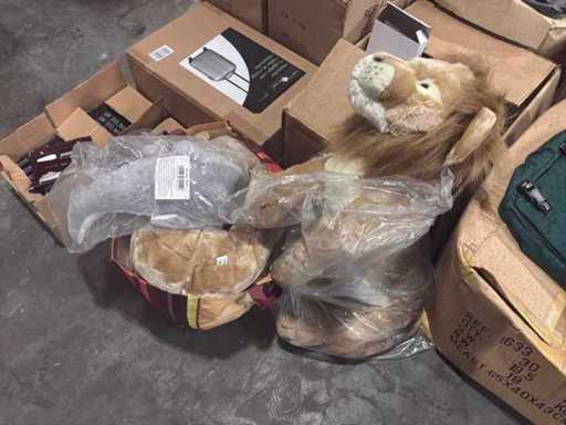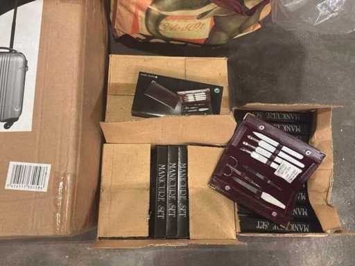 Various transport bags, travel suitcase, calculators, bags, photo cases, stuffed animals, ...