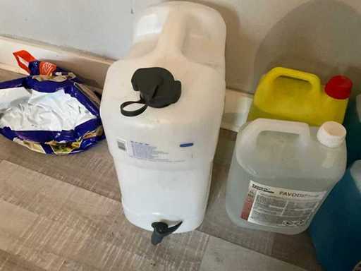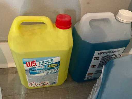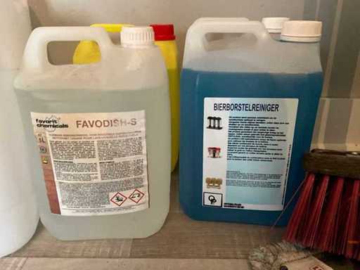 Including 2x 5L brewer's brush cleaner, 5L favodish, 5 L bleach, waste bin and various cleaning brushes