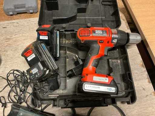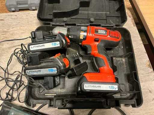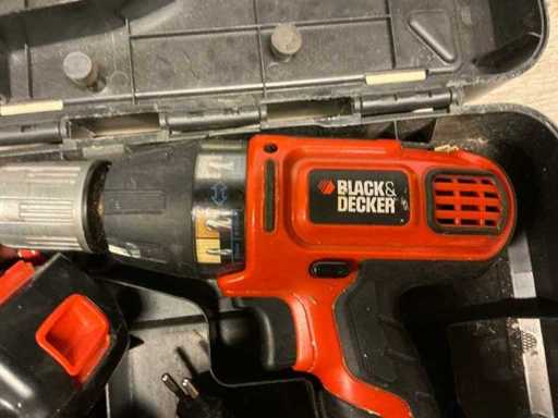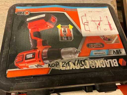 Consisting of battery screwdriver BLACK&decker equipped with 2x battery, charger and storage case VARO electric sander ; VARO10063/19. Drill BOSCH ; CSB 800-2RLE