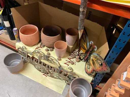 Various flower pots (15x), façade accessories and gift items