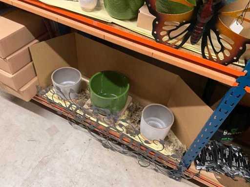 Flower pots diameters 15cm to 25cm, metal wall fittings, various decorative items, and so on...