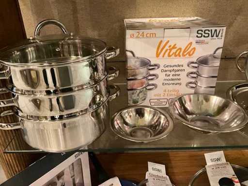 Including colander, 4-piece steamer SSW, cutlery 24 pieces SSW, 2x pan with lid
