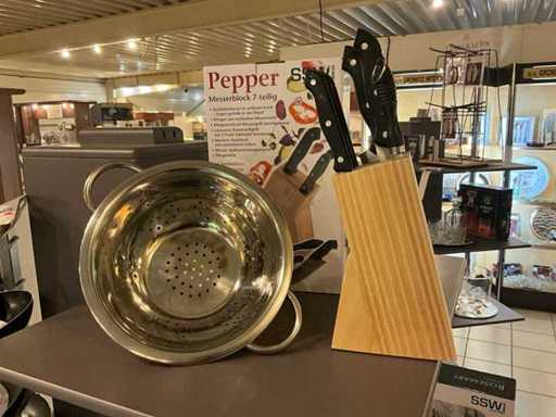 Including various 24-piece cutlery for 6 people, colander, professional knife block, stainless steel serving pan with glass lid 28 cm...
