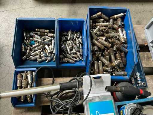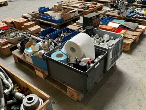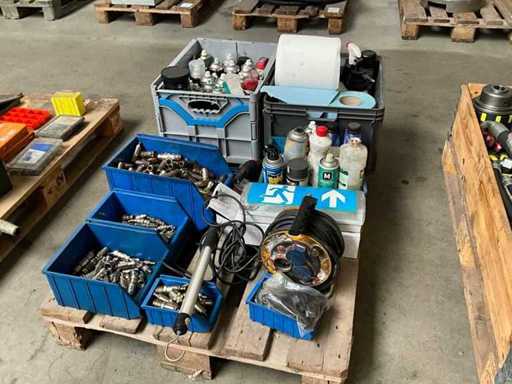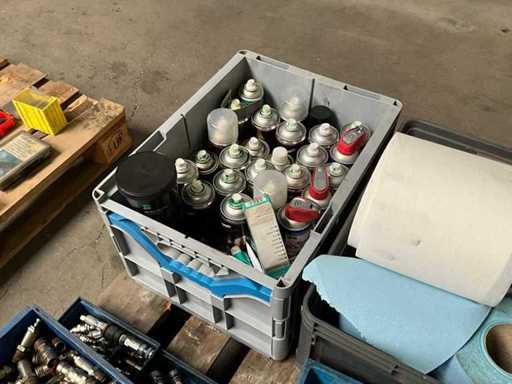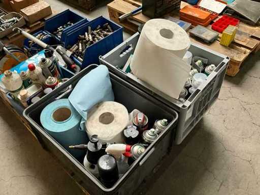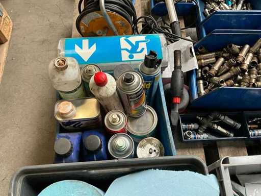 including various maintenance products in aerosol can; pneumatic connections; hand lamp; electrical cable reel; including various plastic crates / trays; without pallet;