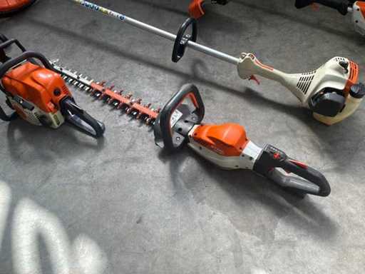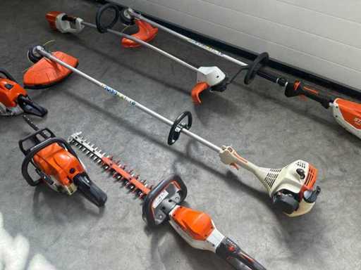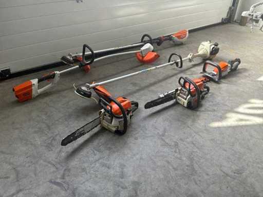 Consisting of 1x Stihl HSA94T hedge trimmer, 1x Stihl MS170 chainsaw, 1x Stihl MS181 chainsaw, 1x Stihl FS55 edge mower, 1x Stihl FSA130R edge mower, 1x Stihl FSA65 edge mower * note without batteries and chargers