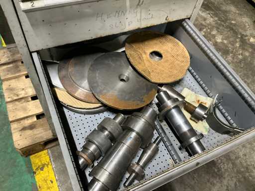 - hydraulic power unit - cooling with paper filter - 2 drawer cabinets with various accessories and machine tools