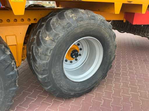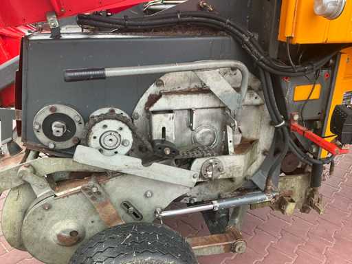 Features scraper floor, electric control box, infeed rotor, pick-up, cutter bar, forced steering, load sensing, all-round work lights, hydraulic brakes, support leg and spring-loaded articulated drawbar. Knives are not assembled and are supplied separately.