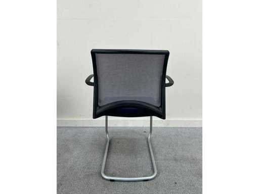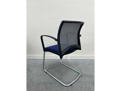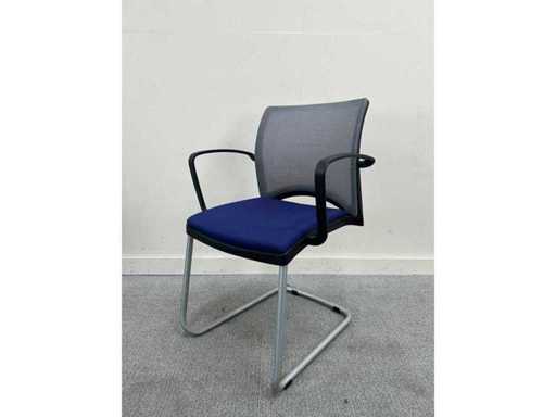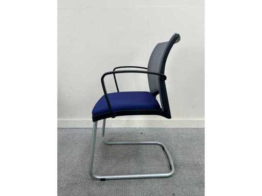Viasit conference chair, blue seat, gray mesh back, stackable with armrests