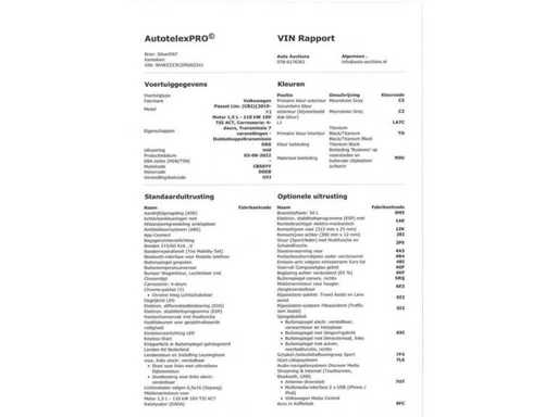 rear seat foldable, rear traffic warning, reversing camera, active emergency assistant, separate rear air conditioning, class 1 alarm (immobiliser), Anti Lock Braking System, Anti Slip Control, Apple Carplay/Android Auto, rear armrest, front armrest, audio system, Autonomous Emergency Braking, luggage partition net, luggage deck, tire pressure monitoring system, driver airbag, driver's seat with massage function, interior mirror automatically dimming, Bluetooth phone preparation, on-board computer, collision recognition and activation, collision warning system, exterior mirror(s) automatically dimming, Exterior mirrors electrically foldable, exterior mirrors electrically adjustable and heated, exterior chrome parts, comfort seat(s), connected services, cruise control adaptive, DAB receiver, roof rails, low beam lights automatic, wireless phone charger, electronic climate control, electric windows rear, electric windows front, Electronic Stability Program, extra tinted glass, traffic jam assistant, sound simulator, high beam assistant, hill hold function, front head airbag(s), keyless start, color gray, knee airbag(s), LED rear lights, LED daytime running lights, leather steering wheel, leather gear lever, lumbar supports (adjustable), alloy wheels multi-spoke 17", Massage seat, multimedia preparation, navigation system full map, Service booklet (digital), charging option, front and rear parking sensor, passenger airbag, rain sensor, lane sensor with correction, steering wheel shifting, Sports steering wheel, start/stop system, Heated seats, power steering speed dependent, steering wheel adjustable, steering wheel multifunctional, telephone integration, traffic sign detection, fatigue recognition, follow-up collision prevention, Full dealer maintenance history available, front seats adjustable in height, WiFi preparation, front side airbag(s) and black gloss (piano) lacquer interior finish