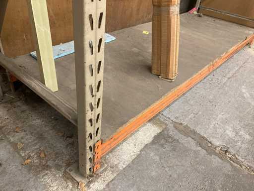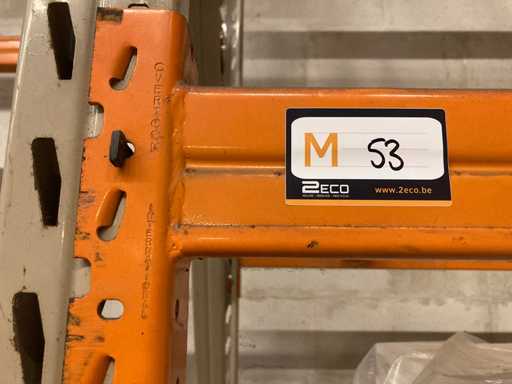 Warehouse shelves : 5 uprights (440x91cm) and 26 beams (270cm) (content on photos not included, sold in separate lot)