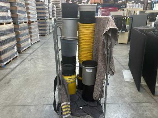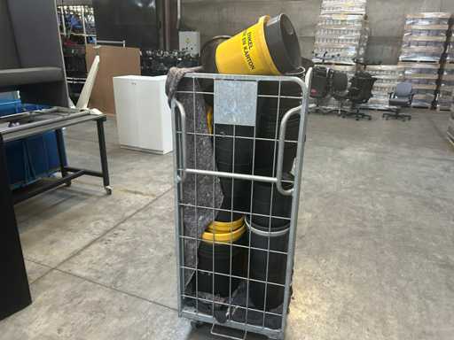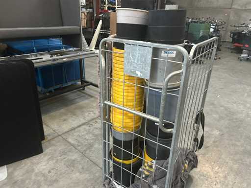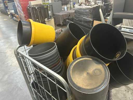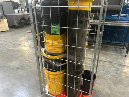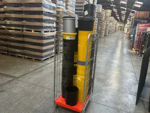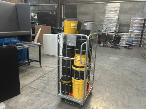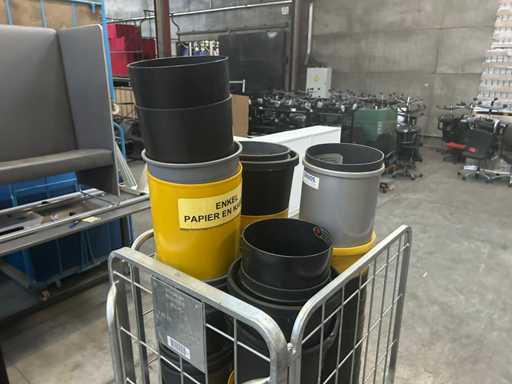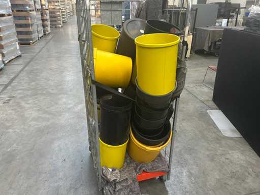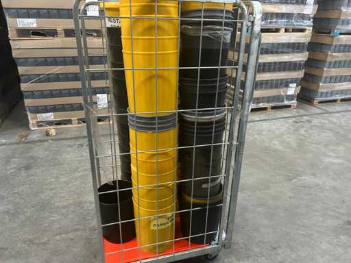 Lot with plastic waste bins. yellow and black 4 roll containers, numbers unknown)