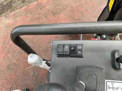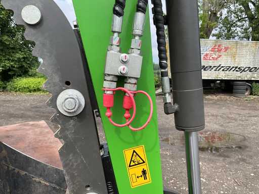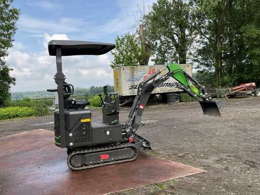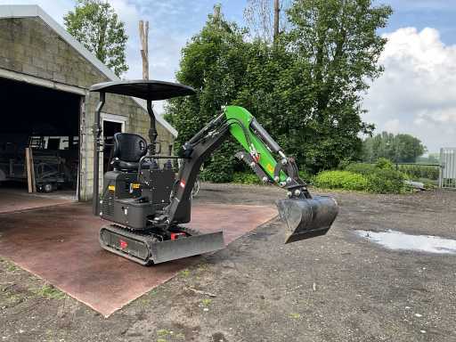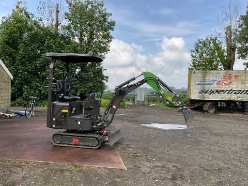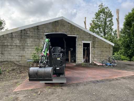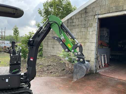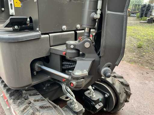 1200 kg. CTX8010. Motor 7 kw. 1 cylinder. Diesel and very economical and yet very strong. Width adjustment of the tracks. Very handy for backyards, can be used through 90 cm gates. Machine itself is 85 cm wide. When removing the hood/roll bar, the headroom is 165 cm. Includes 2 excavator buckets (1 of 60 cm wide and 1 of ... broad) Also equipped with a thumb, with an extra thumb adjuster. Very handy for placing and/or moving concrete edges, tree trunks, concrete corners, etc. Has direct control, works very smoothly and is not prone to malfunctions so easy to maintain. Including mechanical cooling. Motor part is lockable. Track widening at its widest 104 cm Planing blade at its widest 106 cm and at its narrowest 85 cm Very robust and heavy duty. 2 times double valve