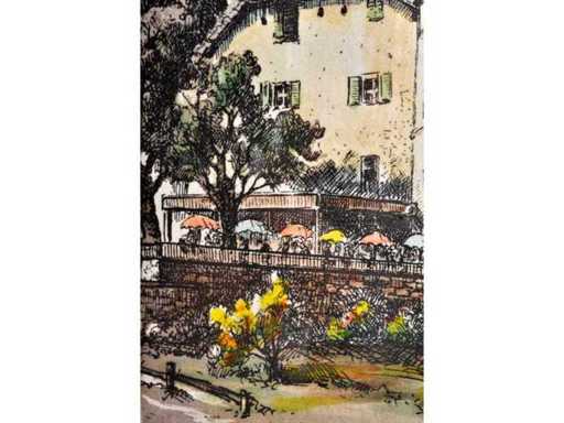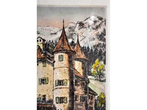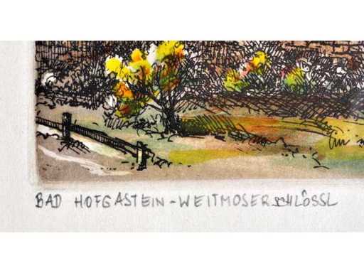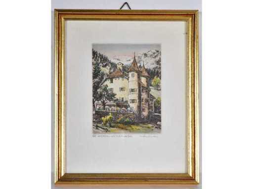 Wilhelm Landsmann - Bad Hofgastein Weitmoser Schlössl - hand coloured etching
