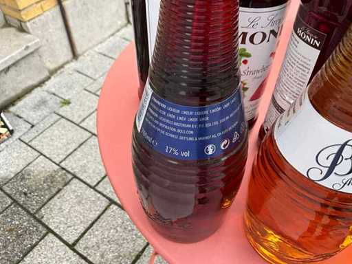 Including 15x rose wine Paul Mas, 1x cassis de Dijon, 6x various syrup Monin, 3x various Bols liqueur