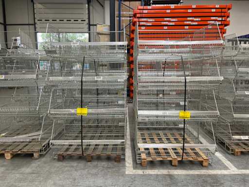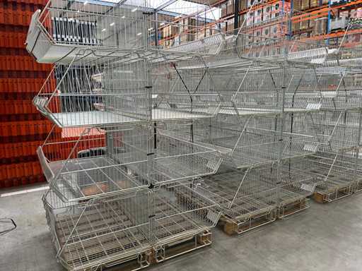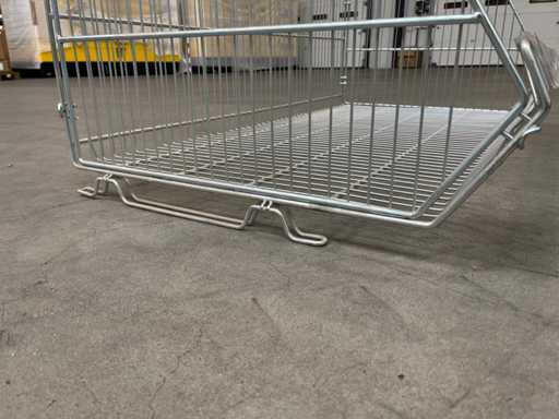 Wire baskets are stackable; steel; Please note; Dividers may be missing in wire basket; there are 8 wire baskets on 1 pallet; 8047