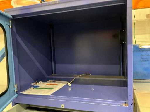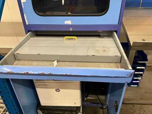 Consisting of: stainless steel work table with dimensions: 100x60x150cm and mobile metal work cabinet equipped with 1 drawer and 3 various doors, dimensions: 80x70x175cm, complete with laser printer HP Laserjet Managed E60055