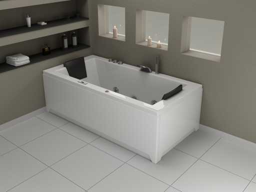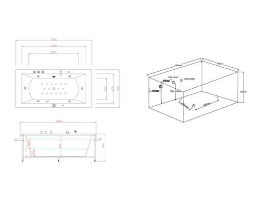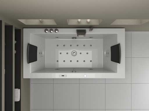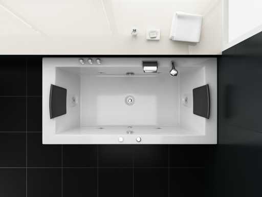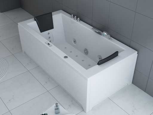 Type : RT1802.1BM.OB Jets d’eau : 4 grands jets d’eau et 16 jets à bulles d’air. Équipé de : Cadre en acier galvanisé - Panneau informatique - Douche de main - 2 Oreillers - Éclairage LED (7 pièces) - Pompe à air - Robinet en acier inoxydable chromé / cascade. Chauffage, ozone, vanne thermostatique.