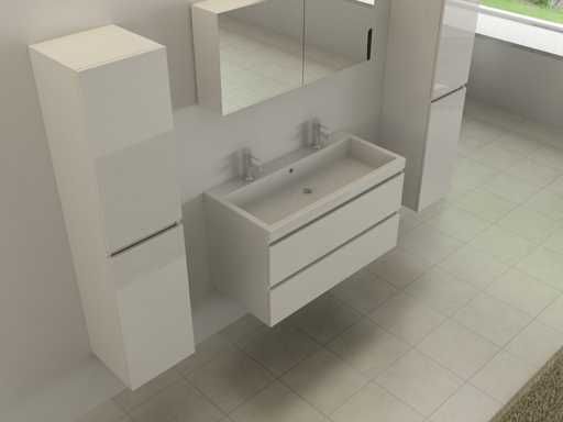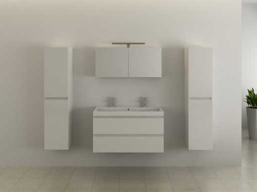 Type : HAWKLUX WM-2-100. Modèle : mobilier de salle de bain pour deux personnes 100 cm - blanc brillant avec lavabo blanc. Taille : Ensemble 2 places : 1* Meuble - 1000x470x520mm, 1* Double évier - 1000x475x160mm (bord 3 cm), 2* Armoires latérales - 1500x350x350mm, 1* Armoire miroir - 1000x450x180mm. Équipé de : Robinets incluant un drain escamotable - 2 tiroirs - Système de fermeture douce sur les portes et tiroirs - Éviers en résine - Éclairage LED au-dessus du miroir - Armoire à miroir avec 2 portes et 1 étagère - Armoires latérales et lavabo préassemblés.