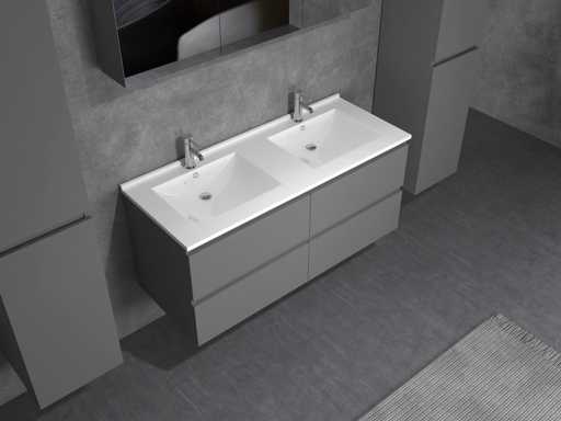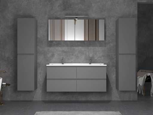 Type : HAVIKLUXWM-2-120-ANT. Modèle : meuble de salle de bain pour deux personnes 120 cm - anthracite très brillante avec lavabo blanc. Taille : Ensemble 2 places : 1 * Meuble de toilette - 1200x455x520mm, 1* Double évier - 1200x460x160mm (bord 2 cm), 2* Armoires latérales - 1500x350x350mm, 1* Armoire miroir - 1200x450x180mm. Équipé de : Robinets incluant un drain escamotable - 4 tiroirs - Système de fermeture en douceur sur les portes et tiroirs - Éviers en résine - Éclairage LED au-dessus du miroir - Armoire à miroir avec 3 portes et 2 étagères - Armoires latérales préassemblées et lavabo.