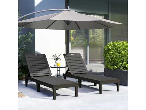 Lot de 2 bains de soleil, chaise longue avec dossier ajustable à 4 positions noir