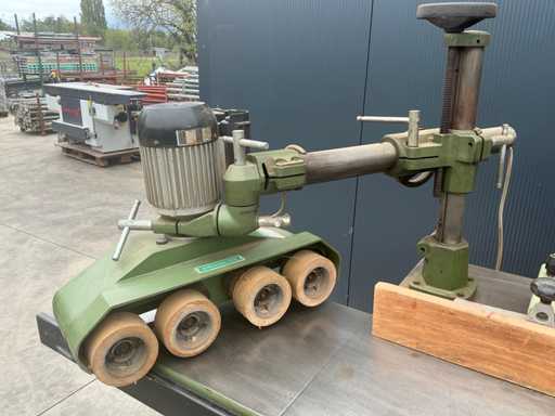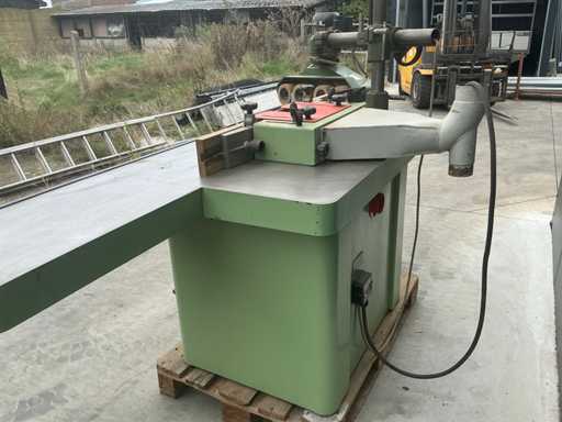 Le bois est guidé le long de la broche au-dessus d’une table de travail, fraisant le profil ou la forme dans la pièce. Longueur 2m50, largeur 90cm hauteur 1meter. Alimentateur Toupie shaft 50mm avec 4 rouleaux. 4 vitesses.